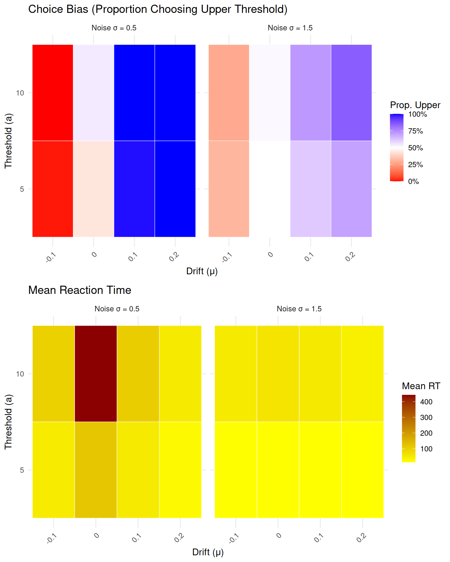 x = "Drift (μ)", y = "Threshold (a)", fill = "Prop. Upper") +