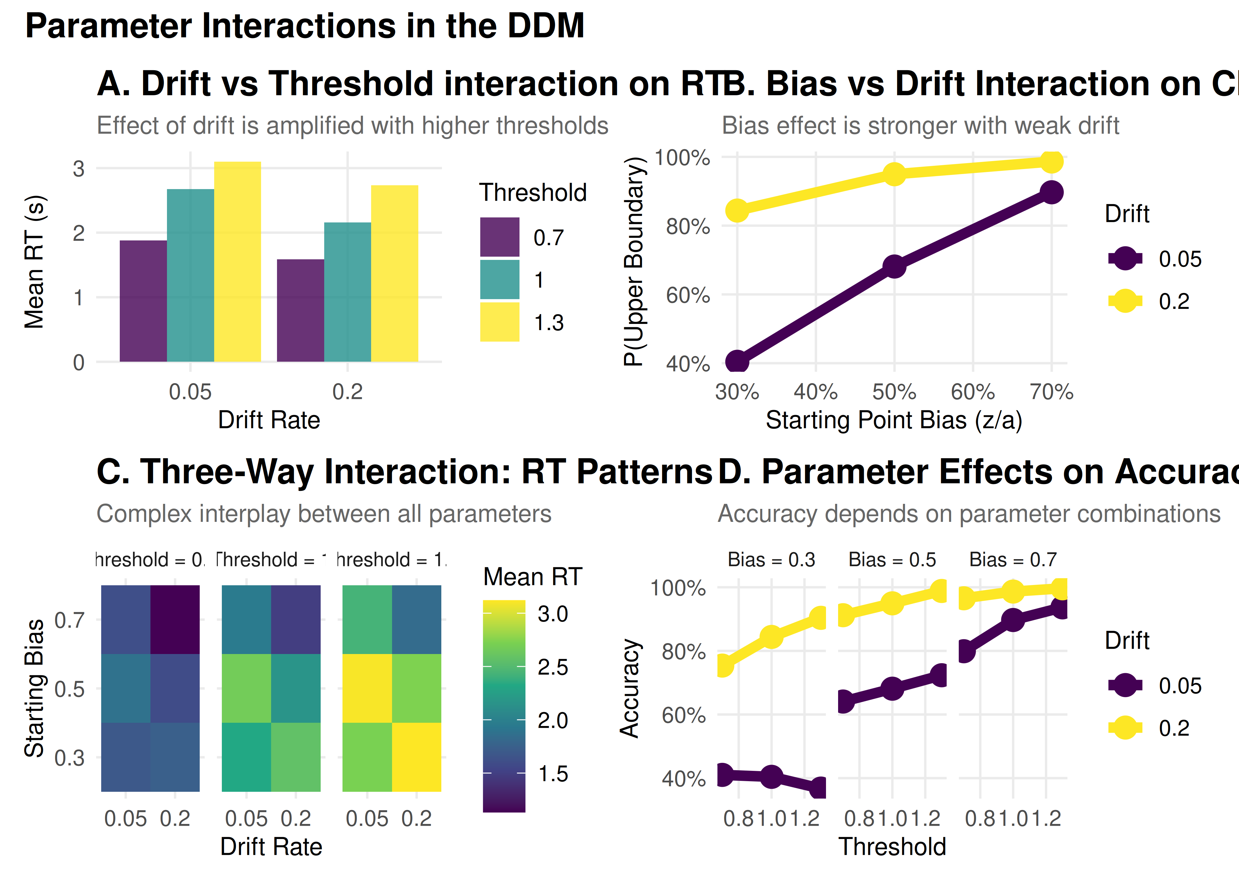 labs(title = "A. Drift vs Threshold interaction on RT",