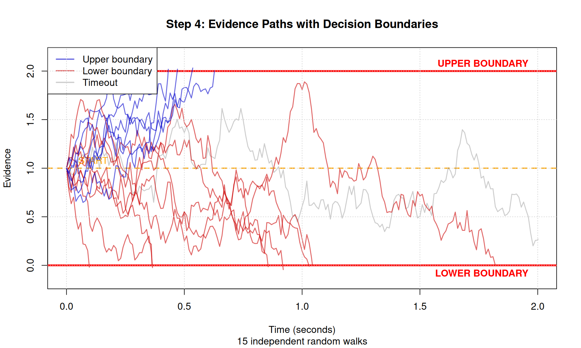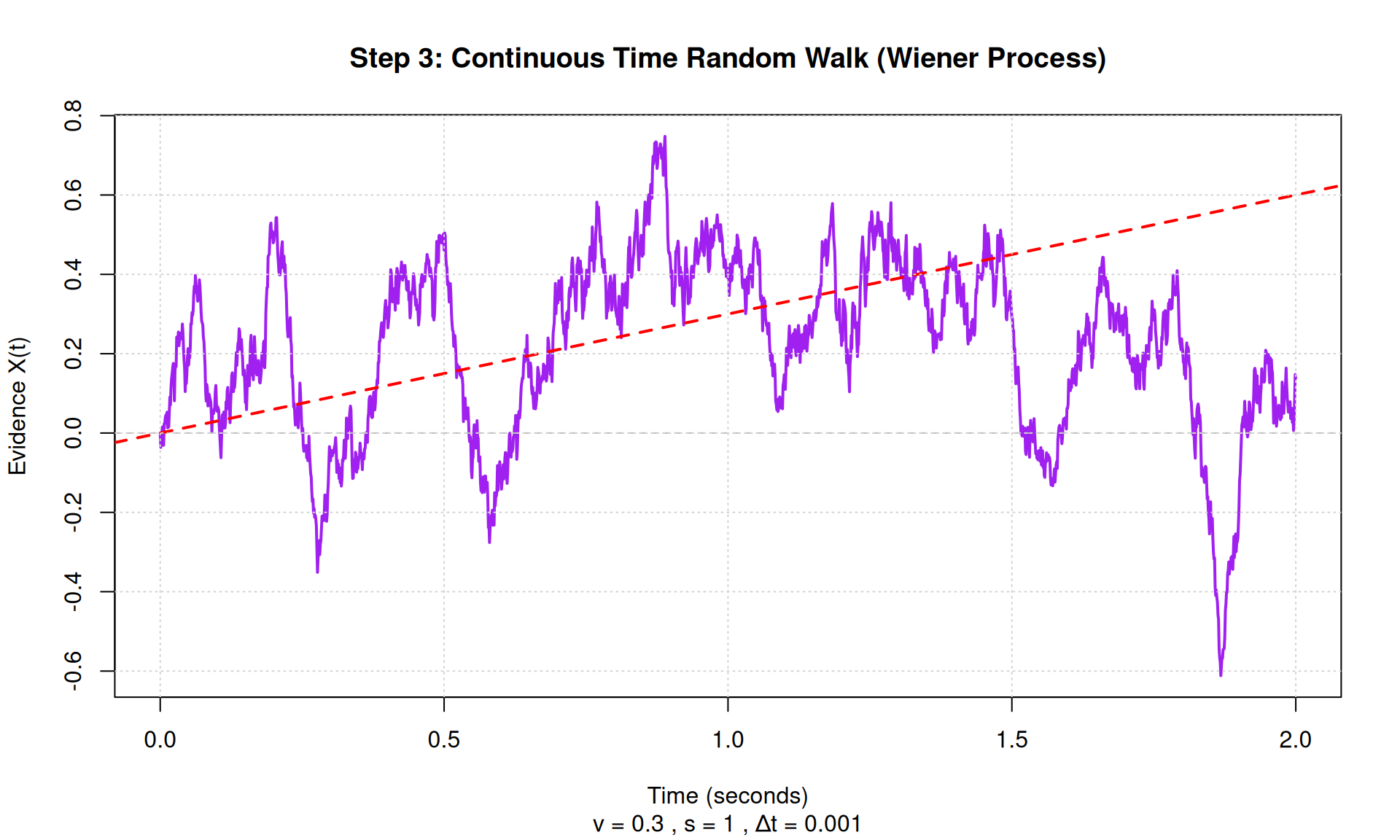 v <- 0.3 # Drift rate (evidence per second)