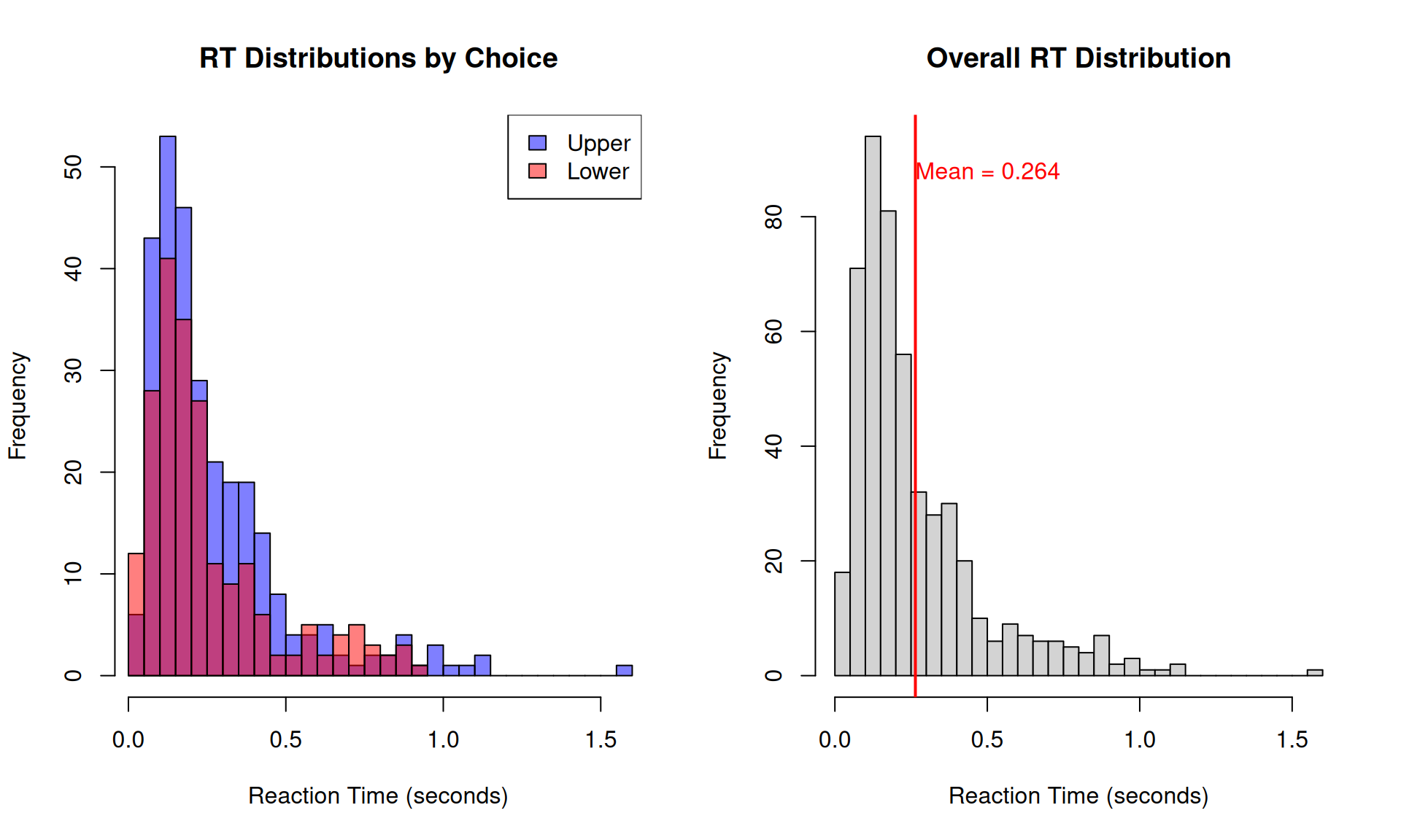 ", Mean RT:", round(mean(RTs[choices == "Upper"]), 3), "\n")## Upper - N: 607 , Mean RT: 0.622